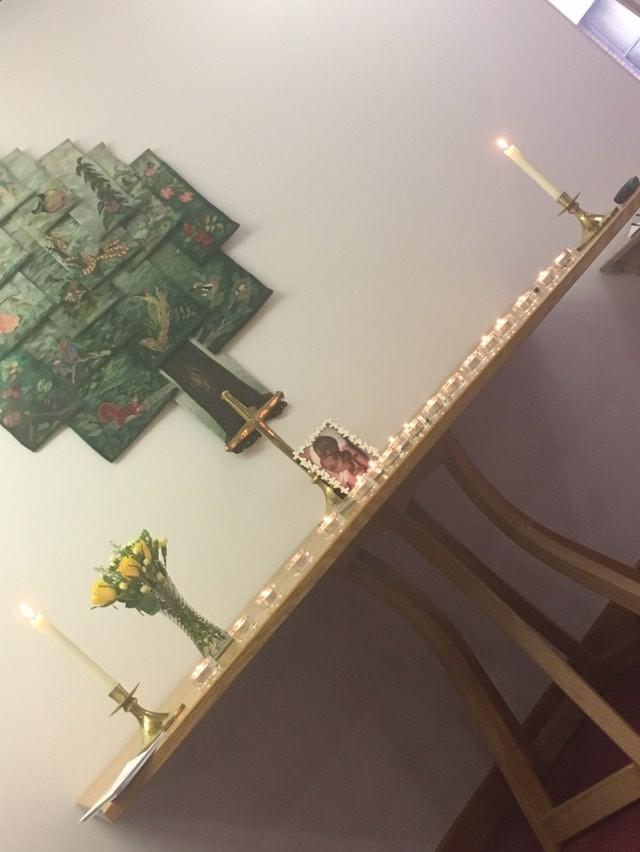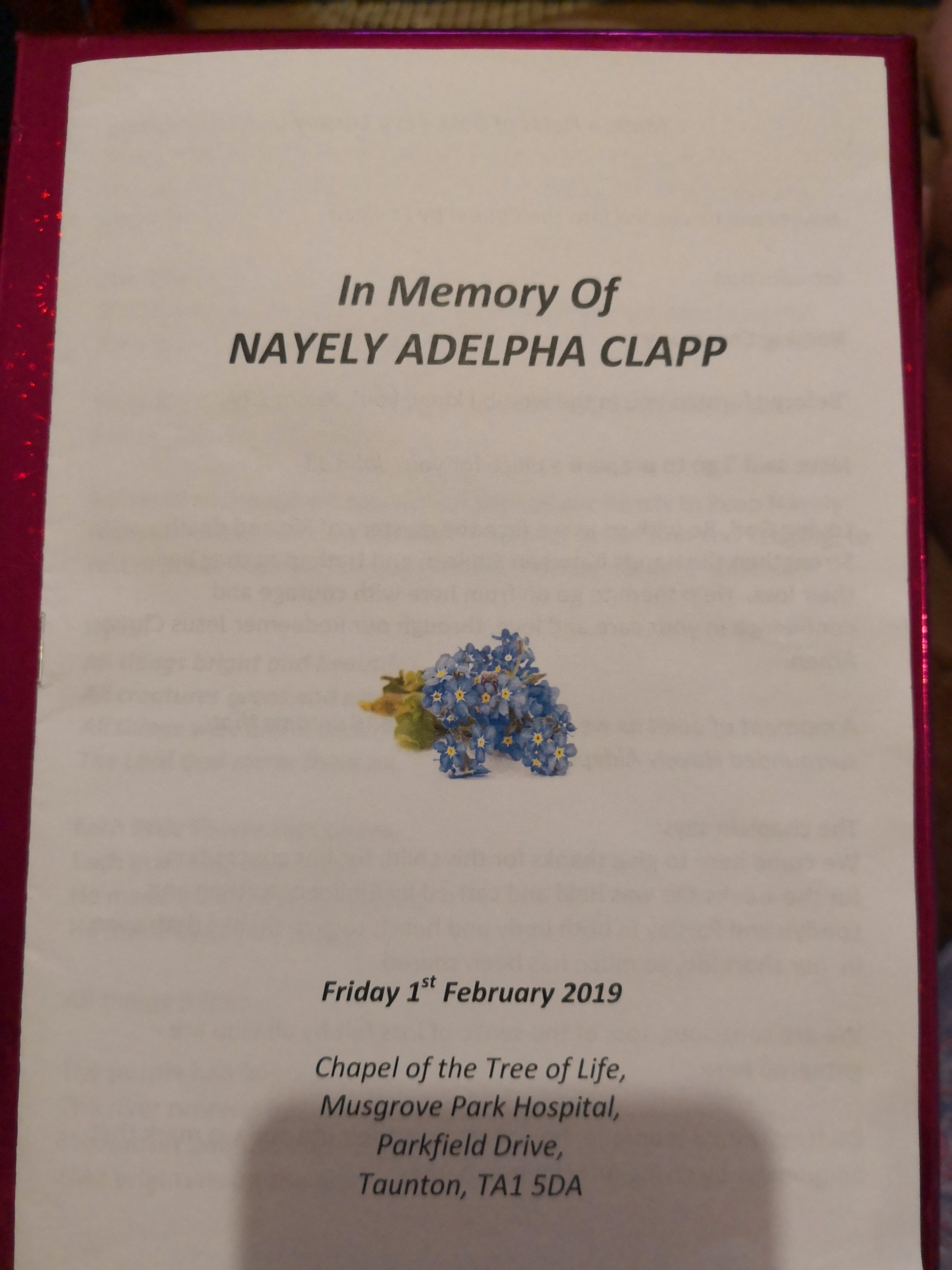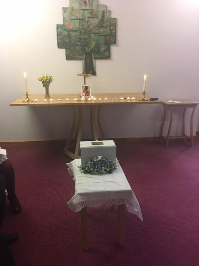 My heart was racing, my legs felt like jelly, my heart was breaking but we managed it, I didn’t dare look at anyone for fear I would break again I placed her on the table with her flowers and a photo of her and the service began.