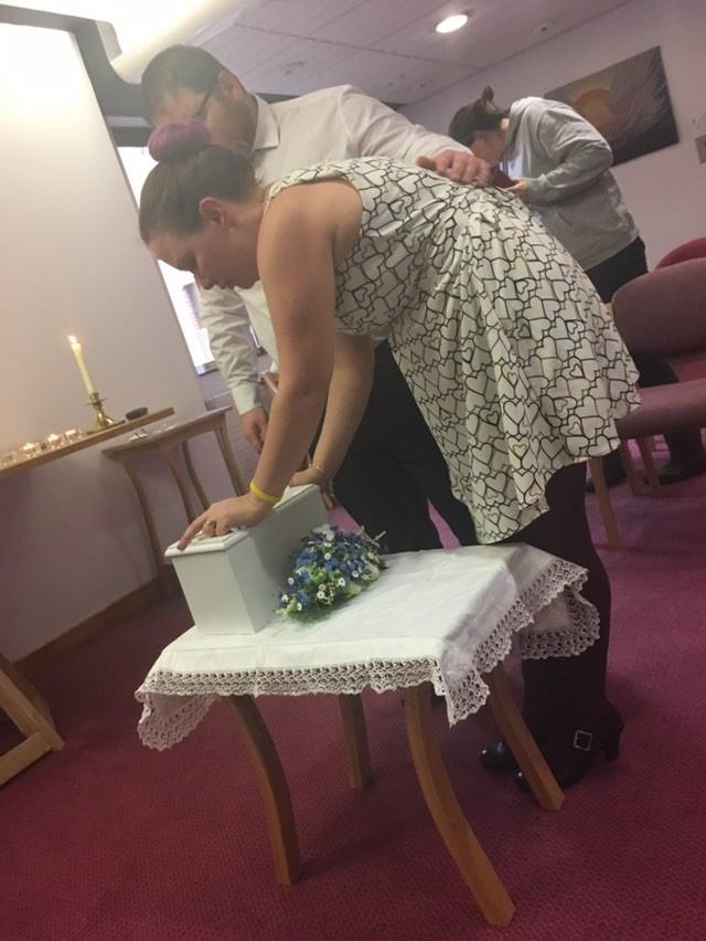 This was it, we were ready to start. I picked up her tiny casket and pressed play on my phone, Eva Cassidy, fields of gold started playing. I stood at the door ready to go into the chapel and I was suddenly hit with this wave of helplessness, I screamed “I can’t do it, I’m not ready, she’s mine!” And I ran back into the room and collapsed in the chair, sobbing and hugging her so tight. “I can’t do it” I said “I don’t want to say goodbye, she’s mine I’m not ready!” Nathan stood behind me with his hand on my shoulder and we both sobbed for a while. Then we composed ourselves and started again.