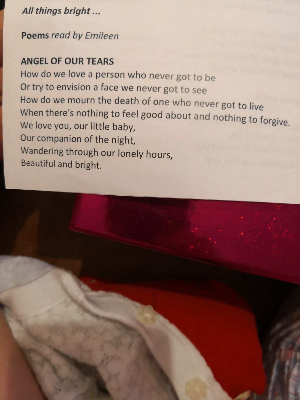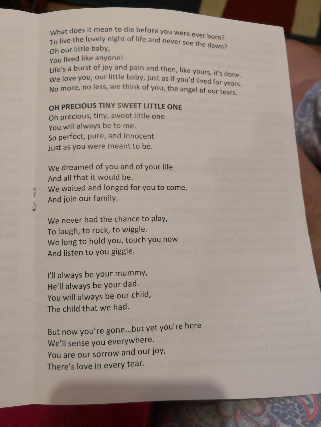 So many tears were shed that day, so many people cried for our baby, it was nice to know that even though her life had been stopped in my womb she still impacted on this world, she touched people’s lives and they cried for her! My baby matters and I know she does but it’s nice to have that knowledge backed up sometimes!