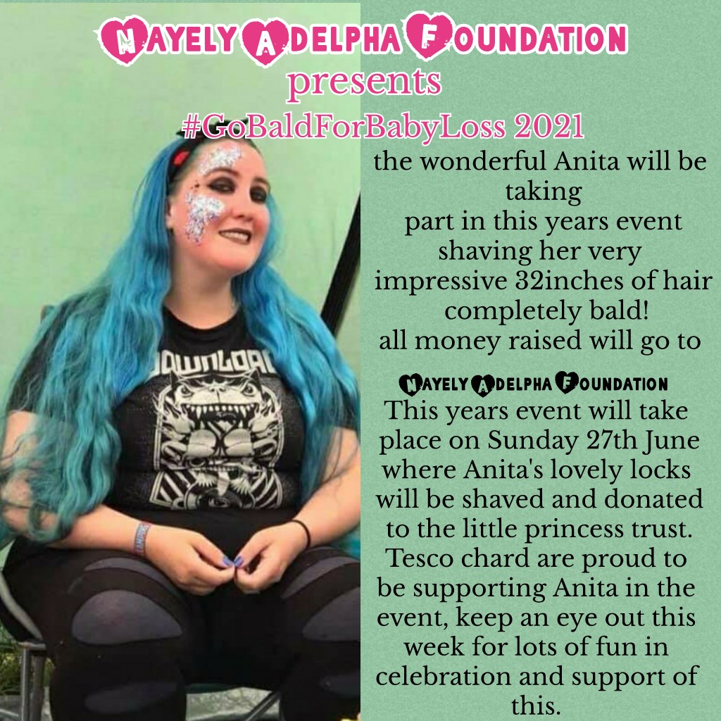 This year we have been blessed by Anita who is going to have a full head shave. Anita who is affectionately know as ‘Anita with the long hair’ currently boasts locks measuring 32 inches in length. Once she has #GoneBaldForBabyLoss she will be donating those incredible locks to The Little Princess Trust who make wigs for Children suffering with cancer.