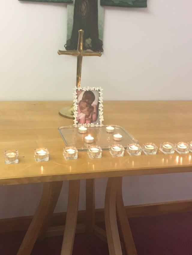 My heart was racing, my legs felt like jelly, my heart was breaking but we managed it, I didn’t dare look at anyone for fear I would break again I placed her on the table with her flowers and a photo of her and the service began.