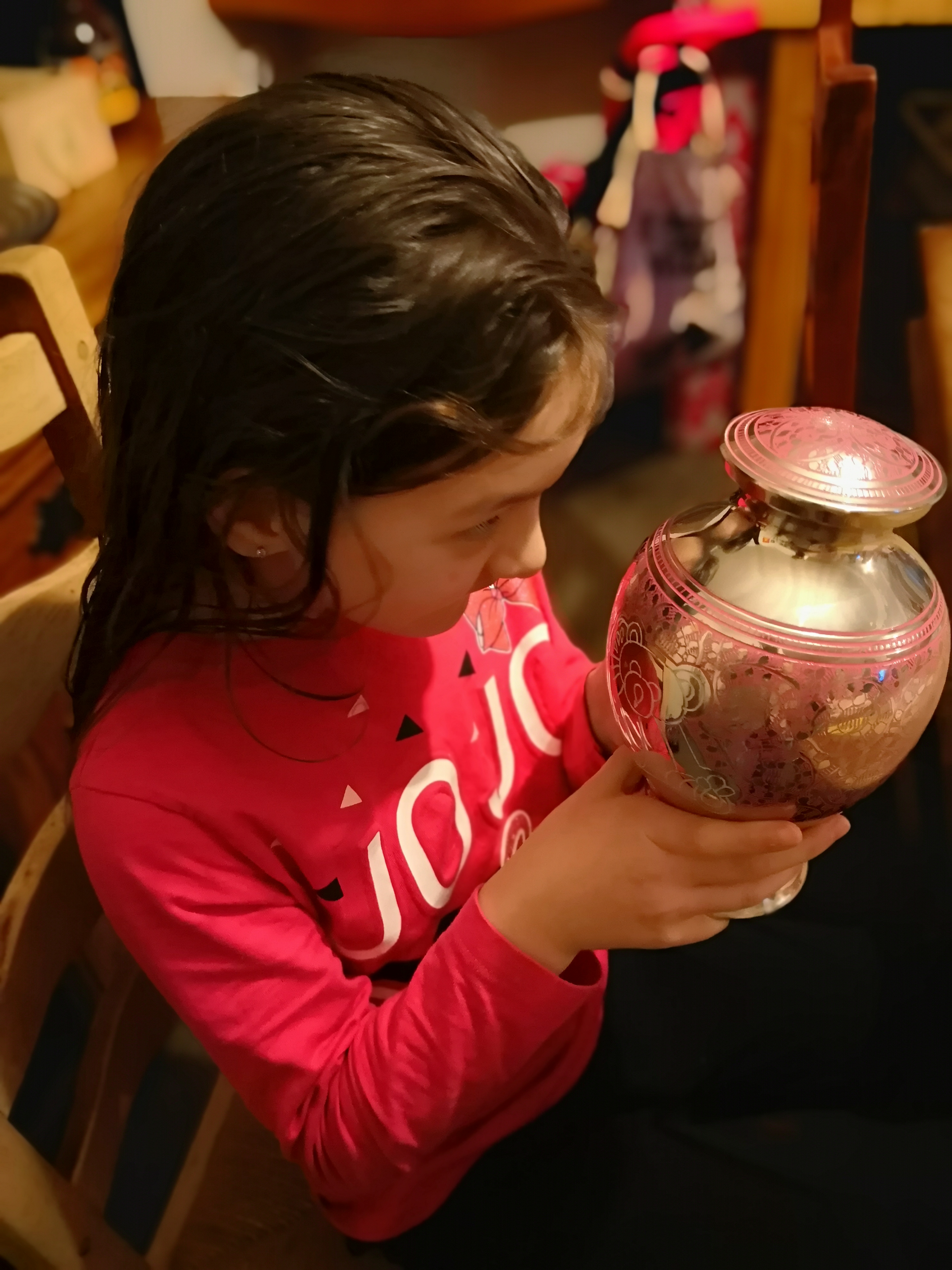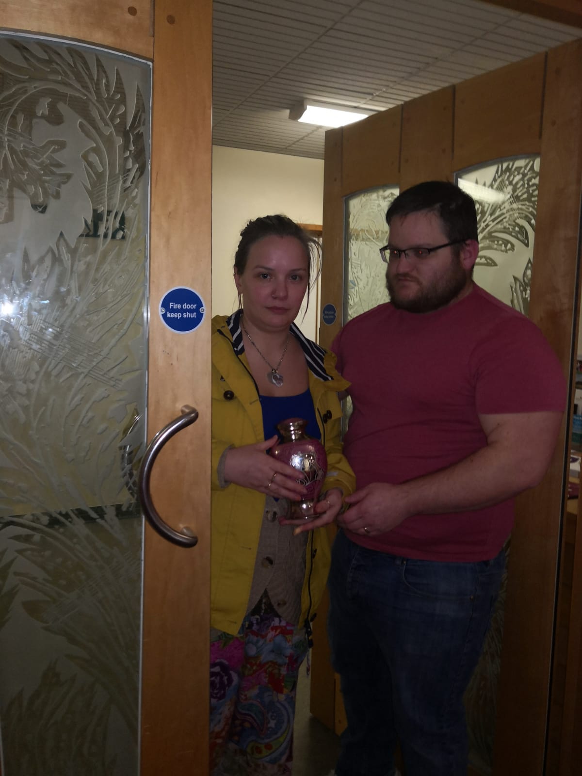 On the 7th February we got the call, she was back at the hospital and ready for us. I contacted Gary so that Londyn could see him because just as I said they would be, they were still in. Londyn didn’t want to come with us to collect Nayely so Gary took her to the cafe for hot chocolate. We went up to the chapel and there was Julia holding a purple bag, in the bag was Nayely. She passed her to me with a letter (the letter was something we need if we want to scatter her I think) the urn is beautiful and will go perfectly on her shelf with all her beautiful things. We asked Julia if she would take photos of us with Nayely, in the same way you would if you were bringing a live baby home from hospital. We wanted it all done properly, this is a sad time but we did get to bring our baby home, I’d never had this opportunity with the other two I lost.