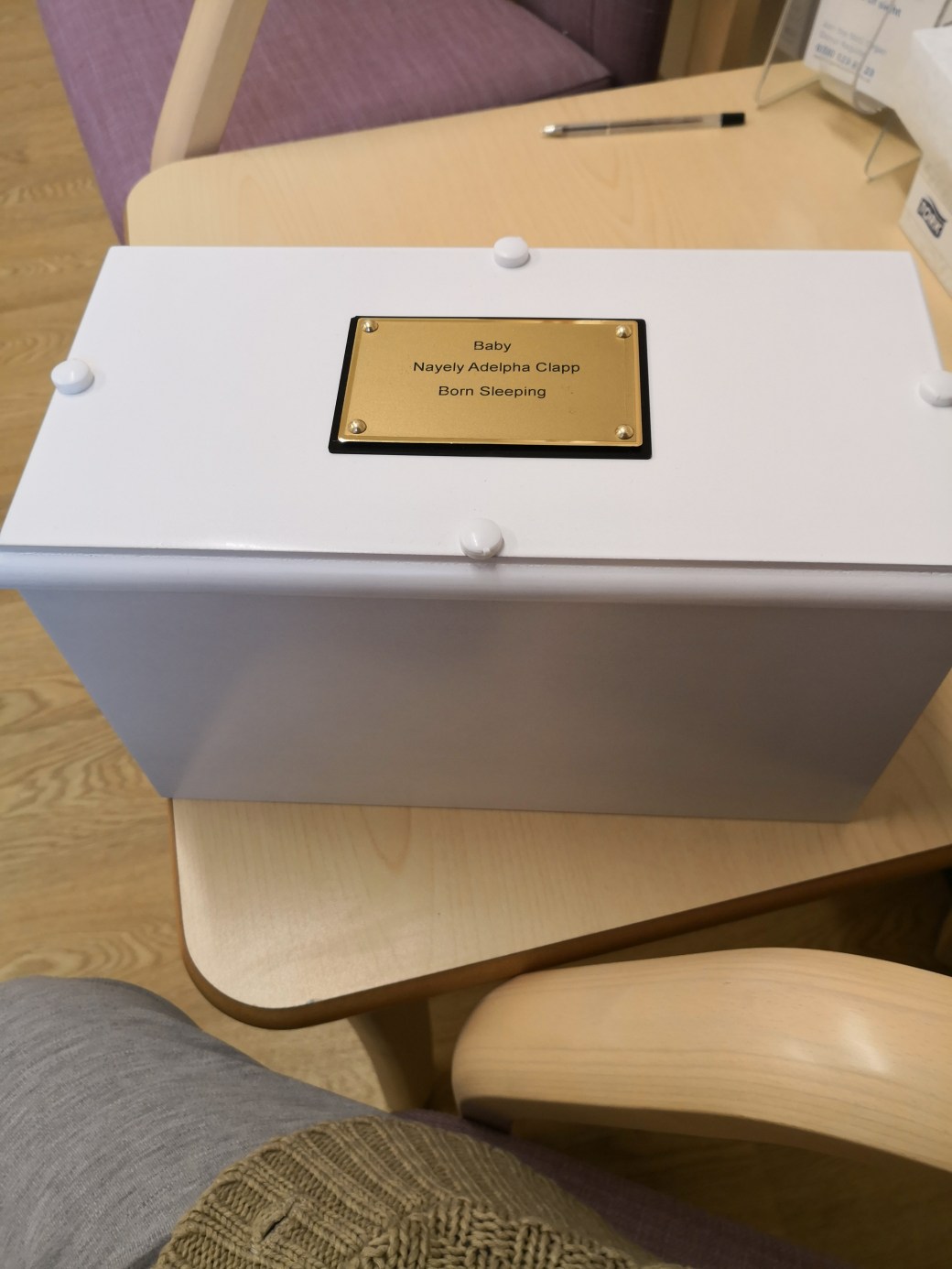 The time came when we had to leave, I still felt surprisingly calm, the drive over was fine, the roads were completely clear and so we actually got to the hospital early. We went up and waited outside the chapel, a man walked past with a black sports type bag and went into the chapel, I looked at Nathan ” that’s her” I said “Nayely’s in that bag” I don’t know how I knew but I did, it was her and once the man left with the bag Julia took us in to be with her, we sat and talked to her still feeling too calm, too ok with what was happening. We had an hour before people were due to arrive, at this point we still didn’t know exactly who to expect, we knew that some people were already at the hospital in the cafe but we didn’t know who else would make it and at that moment we weren’t even that bothered, we had one hour left with our girl before we had to start our final goodbye.