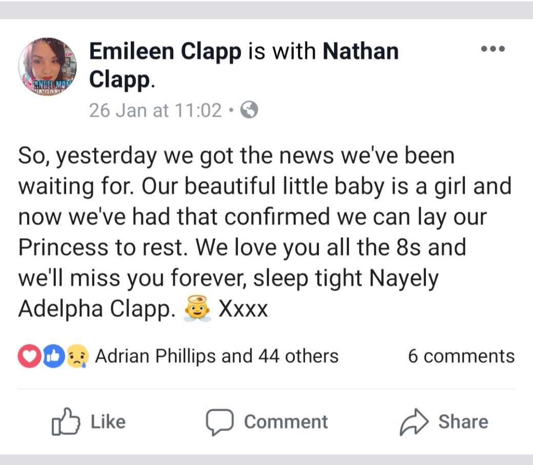 The next day we were about to go and book the hall for the baby’s wake when we got a phonecall, it was an Irish man, he asked if he could speak to Mrs Clapp, “yes that’s me!” It was the other Chaplin from the hospital, he was calling to let us know that the gender results were back – the baby is a girl, another beautiful daughter! It hit me like a train – I love being a mum to girls and I’m sure I’d love being a mum to a boy but I know I love my girls! I never thought I’d be lucky enough to have a daughter and now I have 3! I wish she could have stayed, me and my girls, we would have driven Nathan mad! Our beautiful Nayely Adelpha Clapp, she must be so cross with me for calling her a boy for all this time!