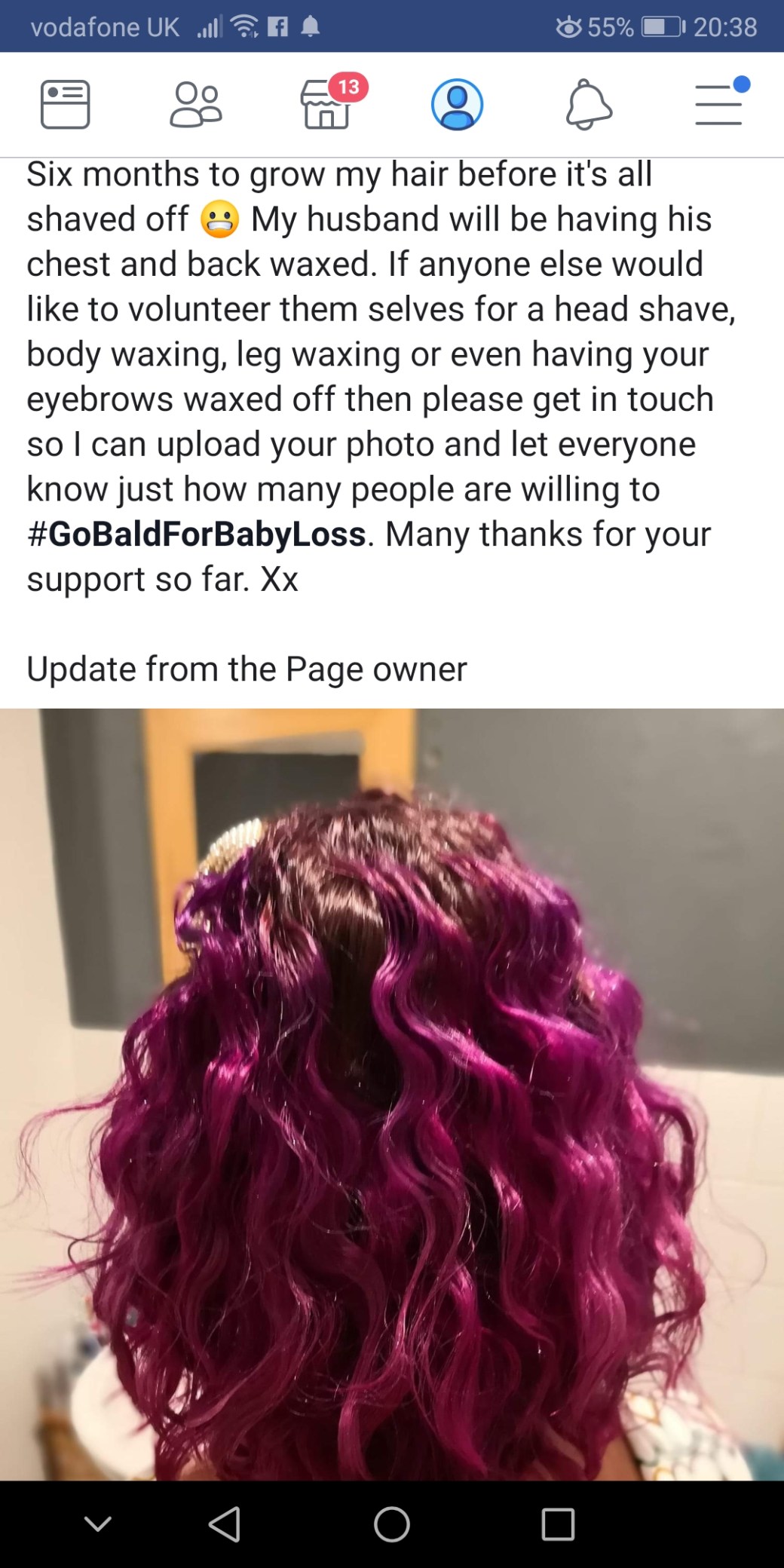 So the just giving page is up, it’s all real now, in June I should have been having a baby but now I’m having my head shaved in memory of our baby, Nathan is getting his chest, back and legs waxed and we’re going to have stalls for raffles, tombolas and suchlike.